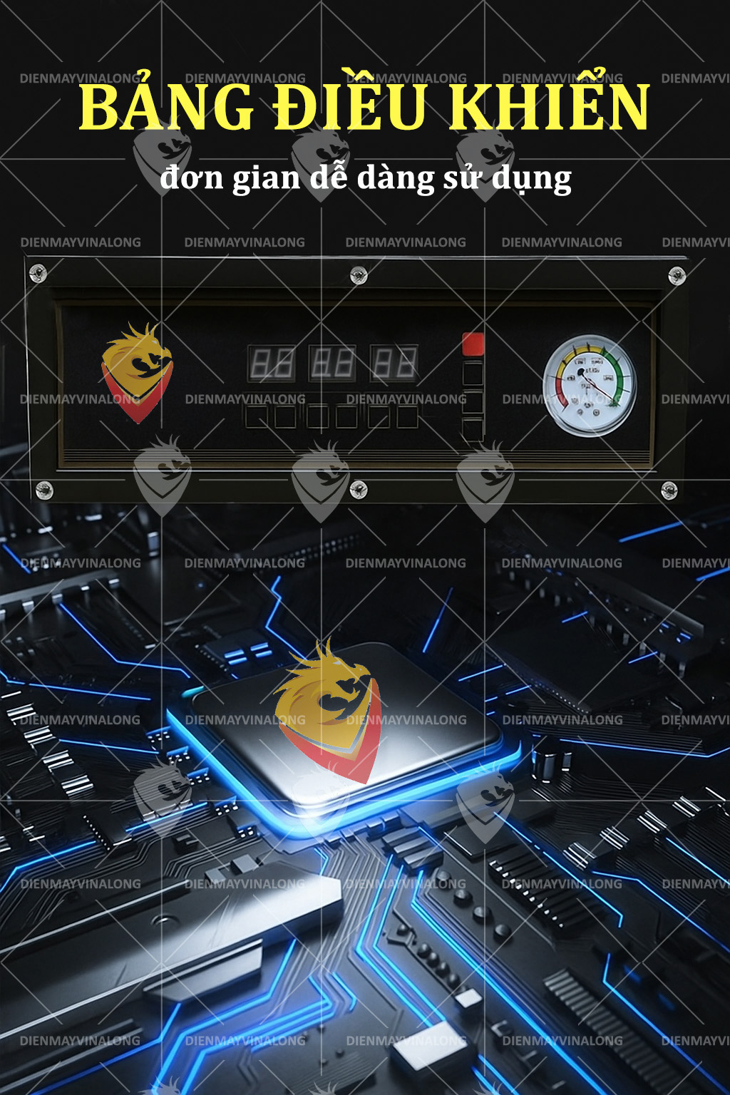 Bảng điều khiển điện tử hiện đại, cho phép điều chỉnh thời gian hút, hàn miệng túi theo từng loại sản phẩm.