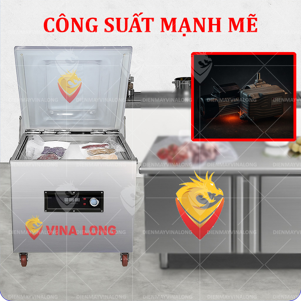 Trang bị motor công suất lớn cùng hệ thống bơm hút chân không hiệu quả, giúp rút sạch không khí trong túi trong thời gian ngắn, tăng năng suất làm việc.