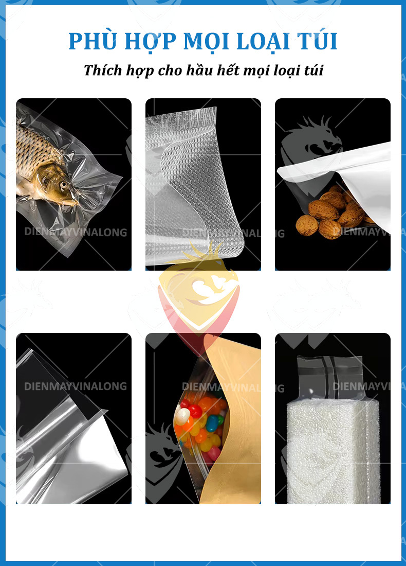Máy tương thích với hầu hết các loại túi hút chân không có mặt gân, không cần sử dụng túi chuyên dụng, giúp bạn tiết kiệm chi phí đóng gói.