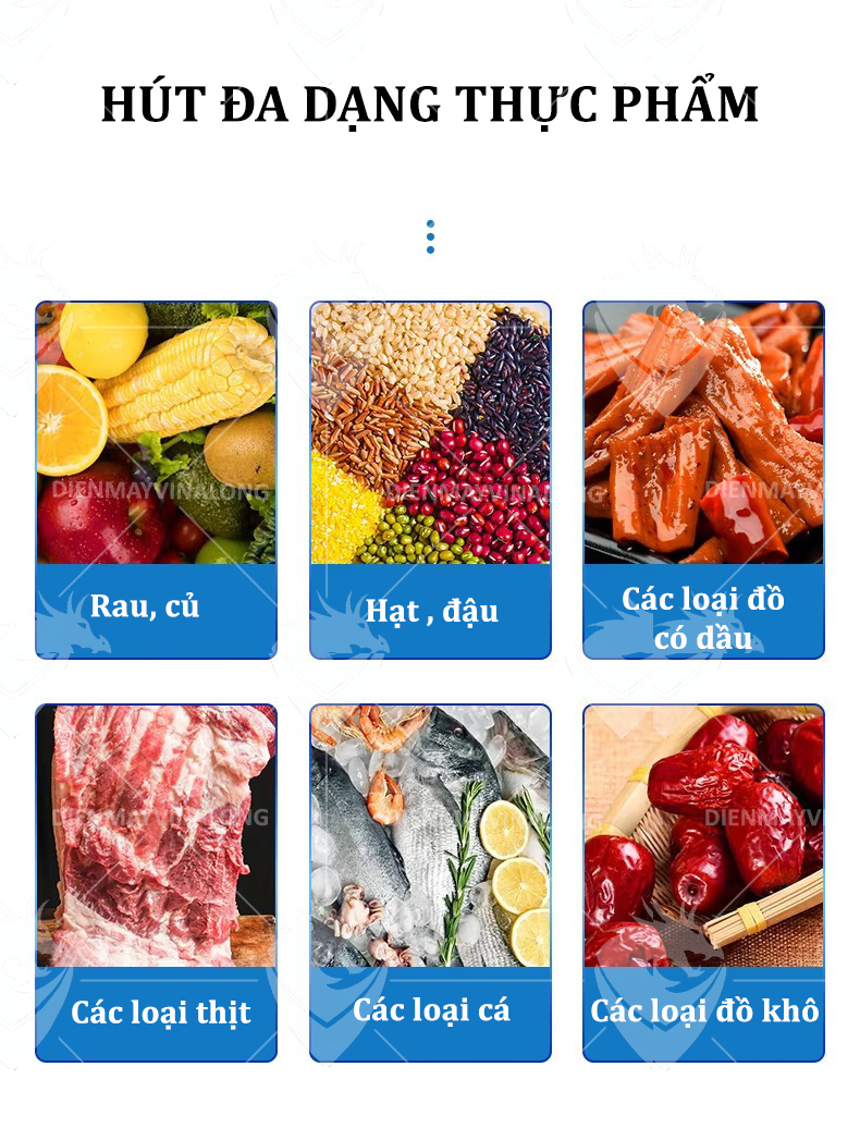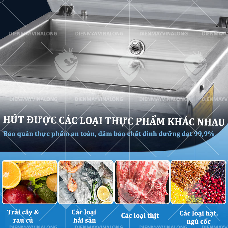 • Buồng hút chân không sâu đến 10cm, phù hợp với đa dạng sản phẩm từ thịt cá, hải sản, rau củ đến sản phẩm đựng trong hộp hoặc vỉ nhựa.