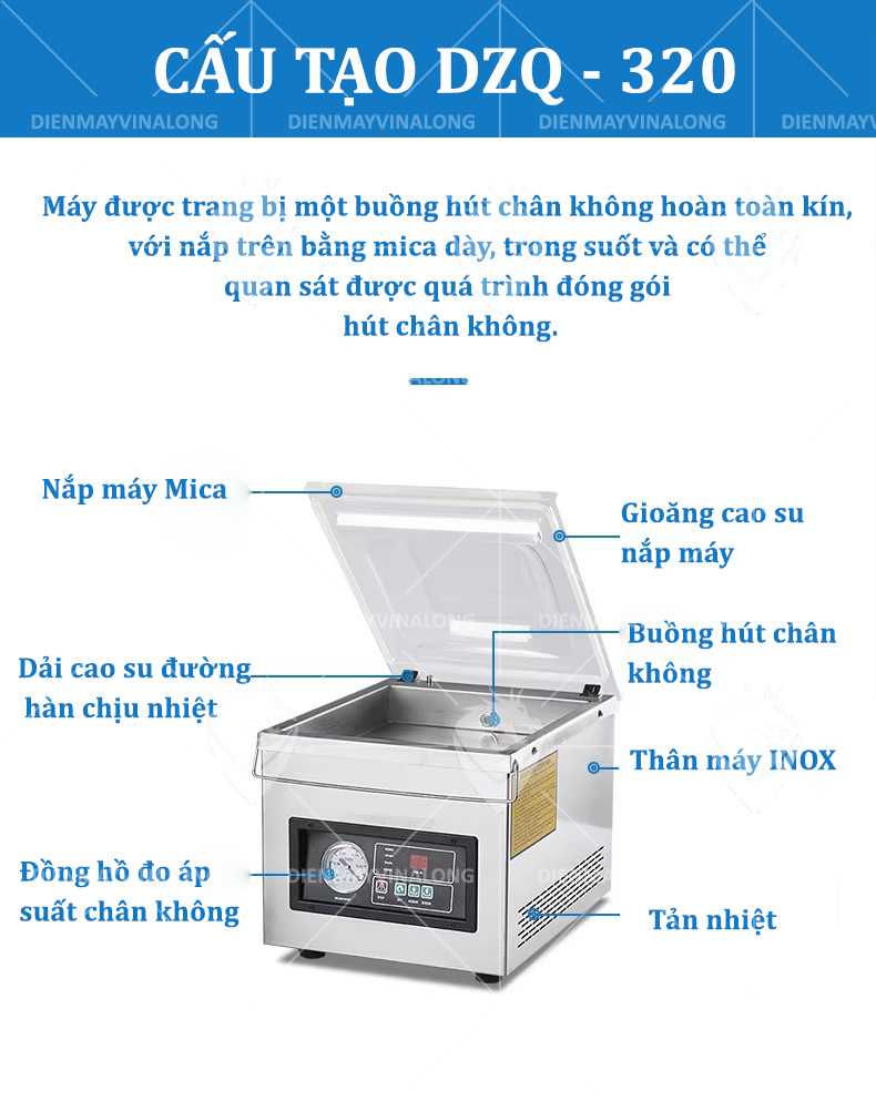 Máy hút chân không VINALONG DZQ-320 – Giải pháp đóng gói chuyên nghiệp, tiết kiệm, hiệu quả cho mọi cơ sở sản xuất