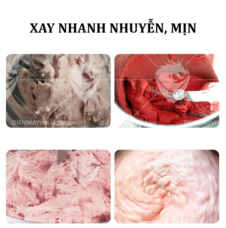 - Thiết kế lưỡi dao khoa học giúp thịt cuộn đảo đều, tăng độ kết dính – yếu tố quan trọng tạo nên giò chả ngon chuẩn vị.