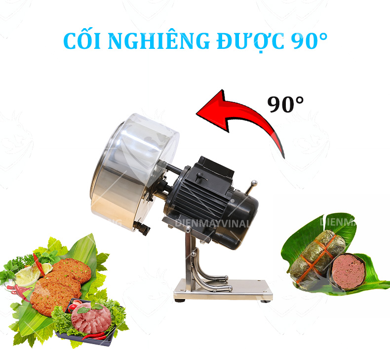 - Cối nghiêng 90° giúp cuộn thịt đều hơn và lấy thành phẩm dễ dàng
