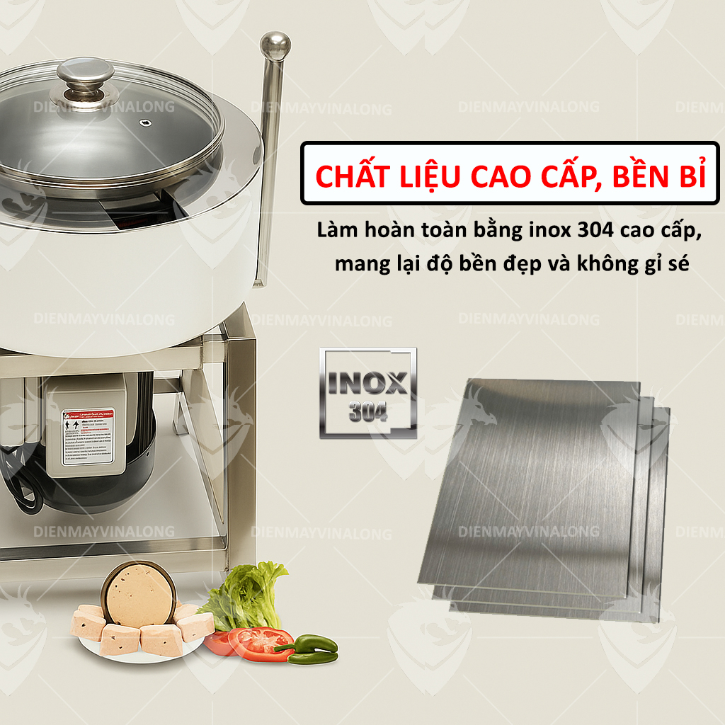 ✅ Chất liệu cao cấp: Toàn bộ thân máy và khoang chứa làm từ Inox 304 chống gỉ, an toàn thực phẩm.